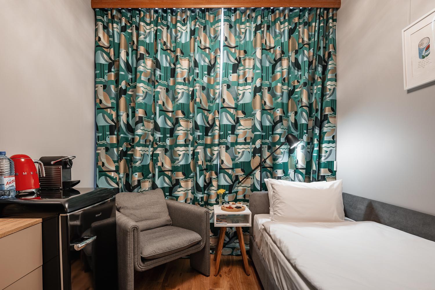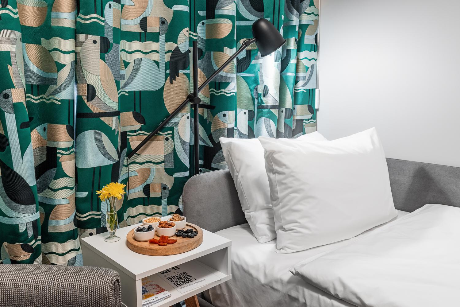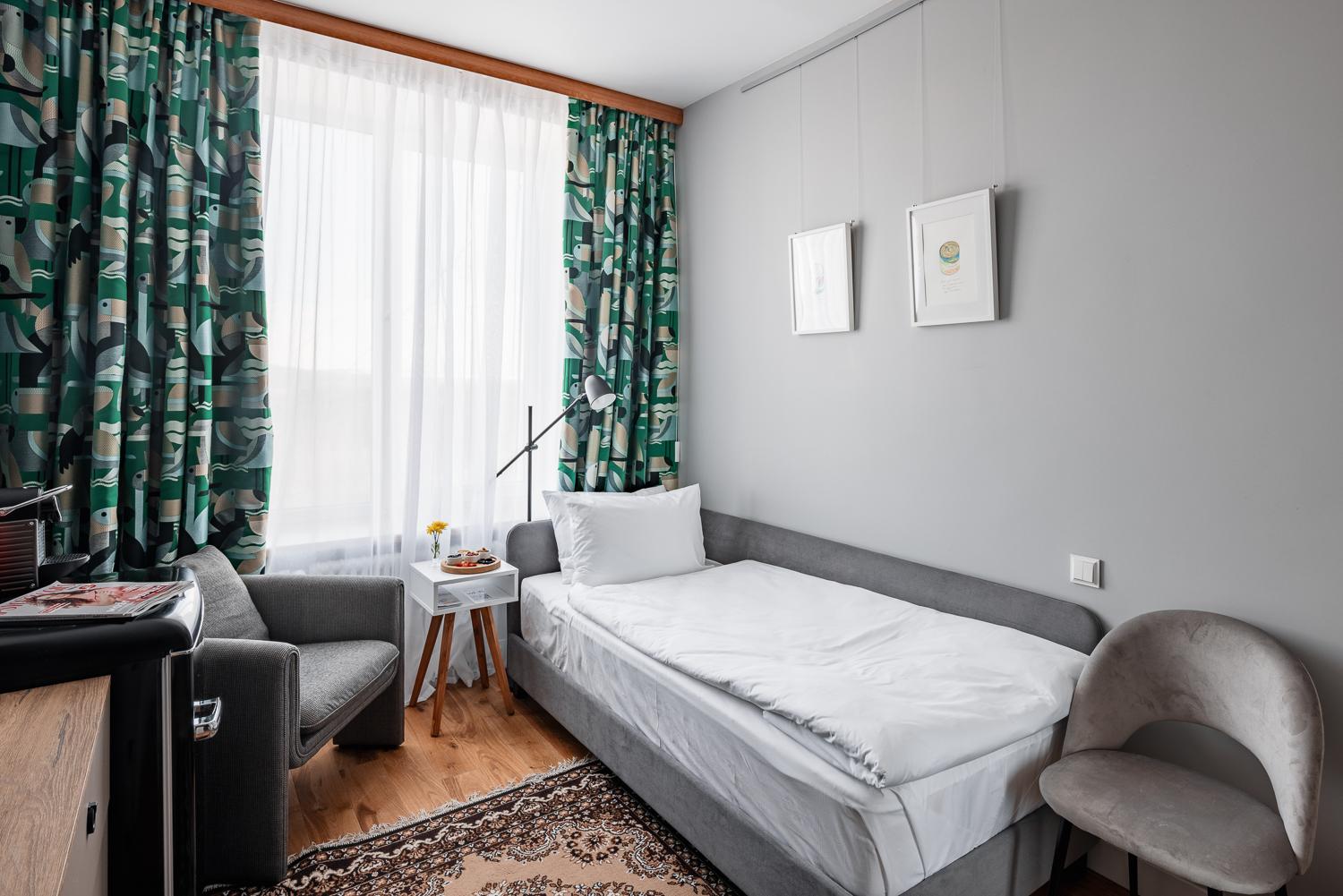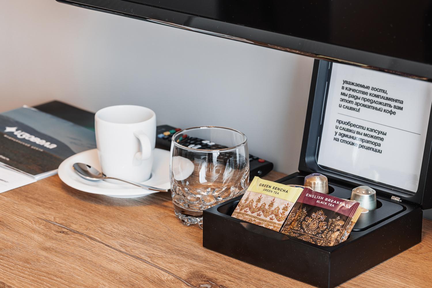 Атмосферный, стильный и современный арт-номер для уединенного размещения в арт-санатории "Изовела". Из окон открывается неповторимый вид на горы Хибины. Элегантный интерьер продуман до мелочей: - комфортная односпальная кровать с прикроватным светильником - Рабочая зона с удобным столом, ip-телефоном и wi-fi - Собственная просторная гардеробная - Арт-объекты и картины современных российских и зарубежных художников - Телевизор с возможностью подключения вашего смартфона. - Кофемашина Nespresso, чайник Smeg и холодильник. - В ванной комнате халаты из натурального хлопка и тапочки, профессиональный фен, весы, а так же зеркало с подсветкой.