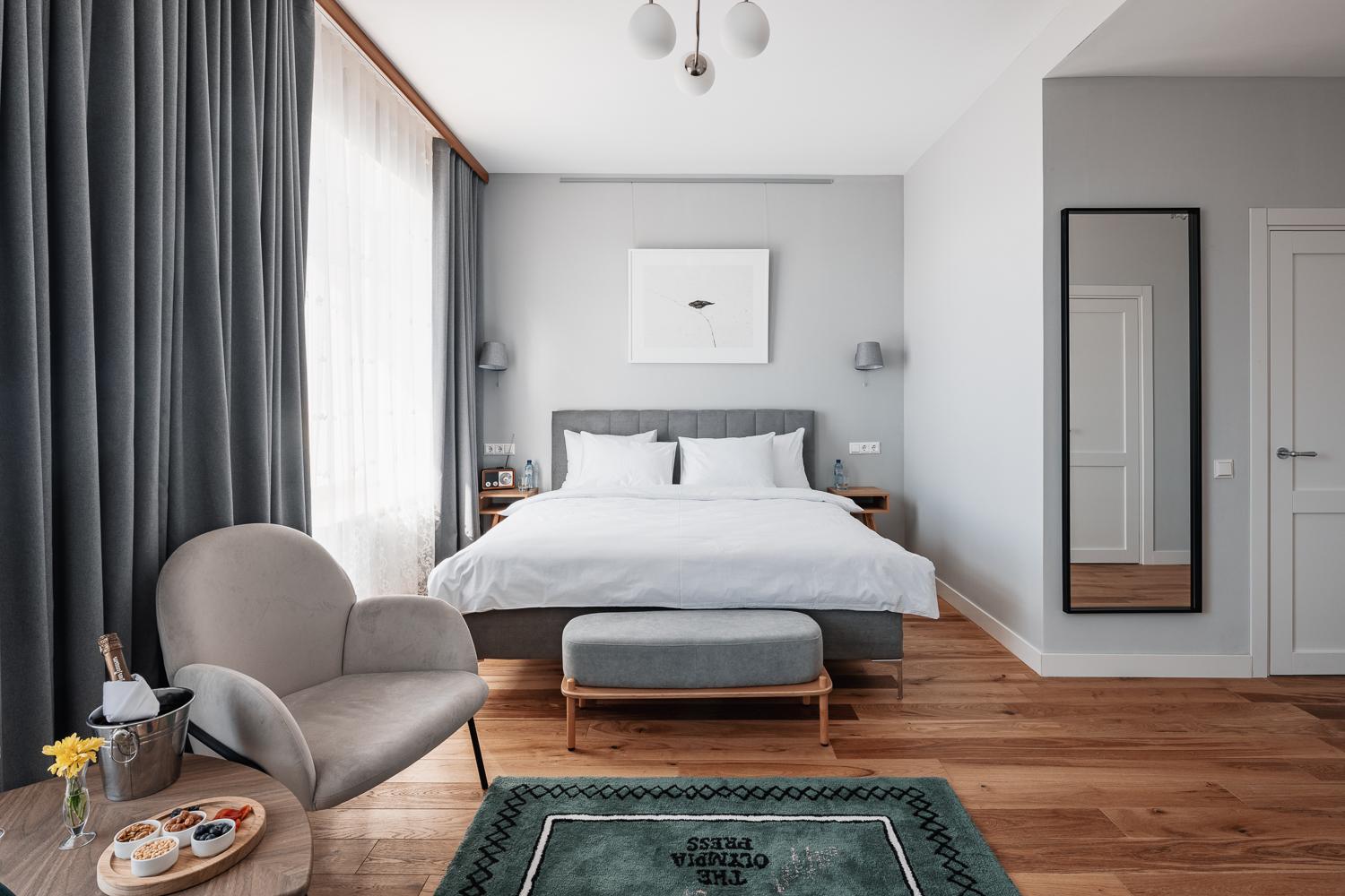 Атмосферный, стильный и современный арт-номер для комфортного размещения в арт-санатории "Изовела". Из окон открываются неповторимые виды на город и горы Хибины. Элегантный интерьер продуман до мелочей: - двуспальная кровать King Size или 2 отдельные кровати TWIN с индивидуальными прикроватными светильниками. - Рабочая зона с удобным столом, ip-телефоном и wi-fi. - Собственная просторная гардеробная. - Арт-объекты и картины современных российских и зарубежных художников - Большой телевизор с возможностью подключения вашего смартфона. - Кофемашина Nespresso, чайник Smeg и холодильник. - В ванной комнате халаты из натурального хлопка и тапочки, профессиональный фен, весы, а так же зеркало с подсветкой.