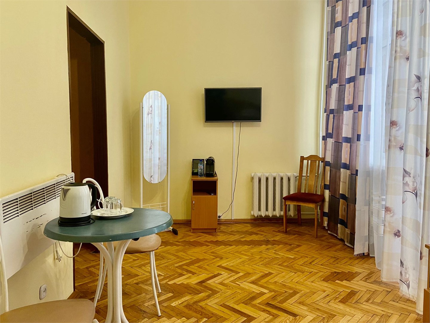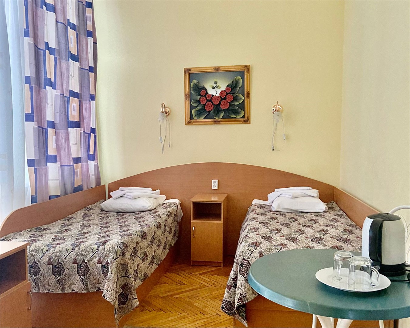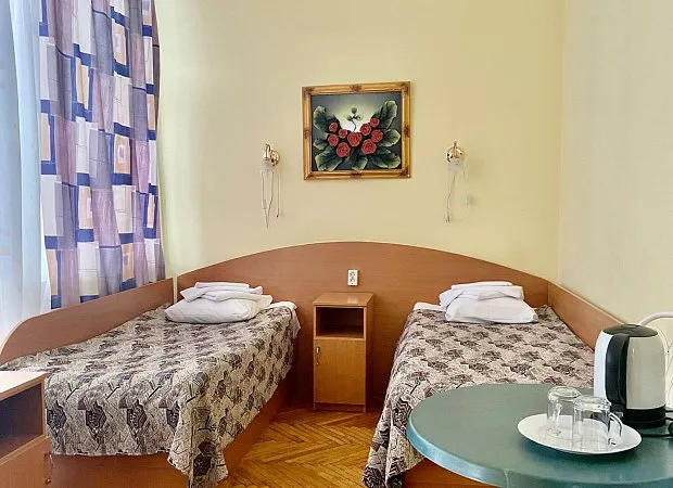 Уютный номер с видом на горы и сад, двумя односпальными кроватями, душевой, отдельной прихожей, оборудован всем необходимым для комфортного пребывания в арт-санатории Изовела.