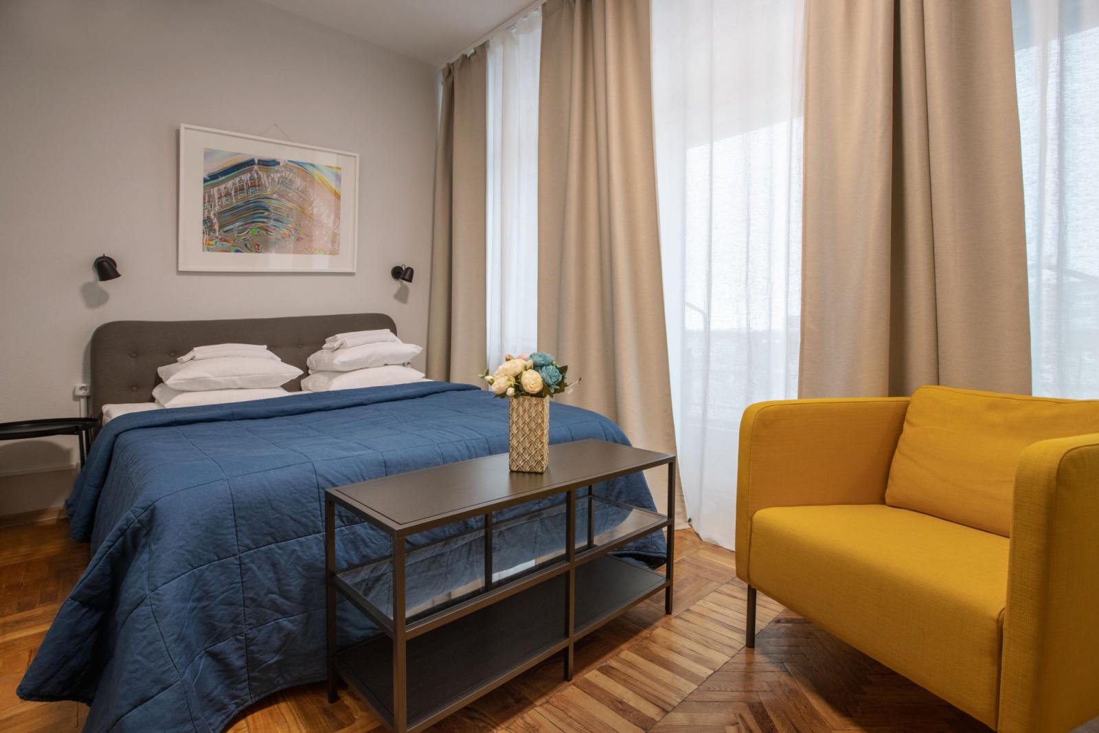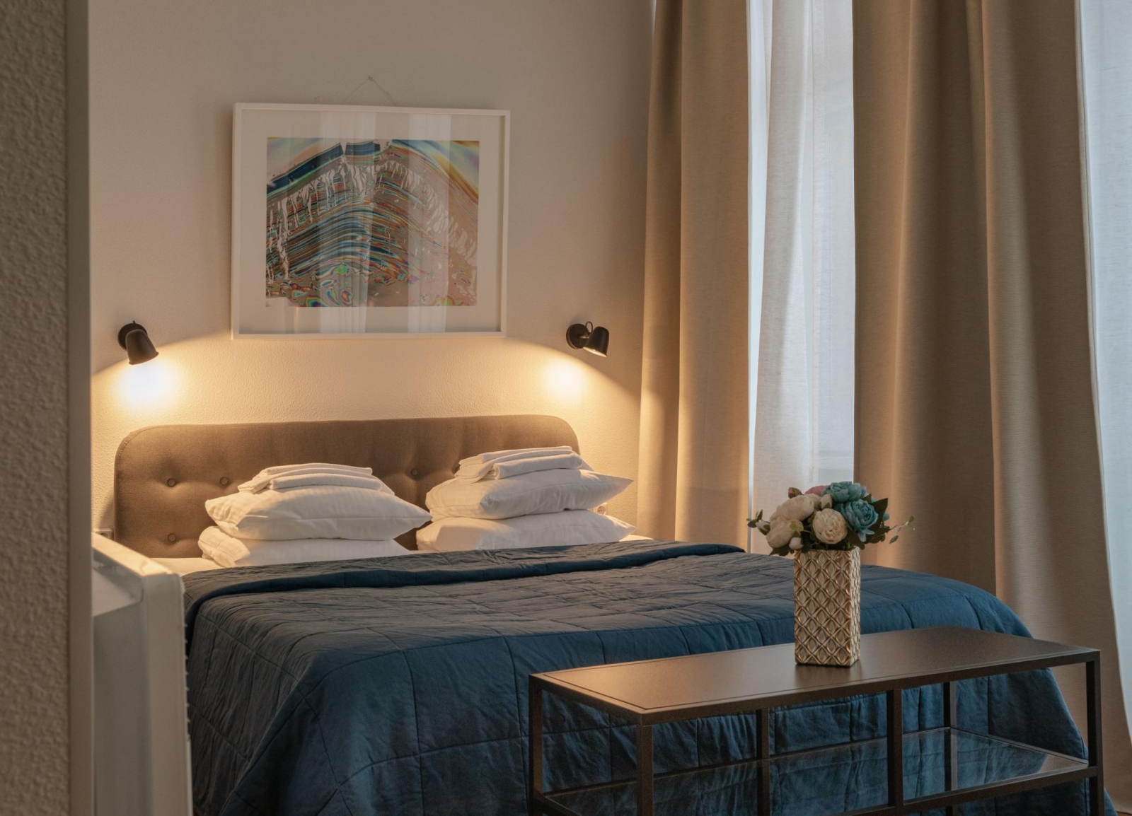 Уютный номер с видом на горы и сад, большой двуспальной кроватью, душевой, балконом, отдельной прихожей, оборудован всем необходимым для комфортного пребывания в арт-санатории Изовела.